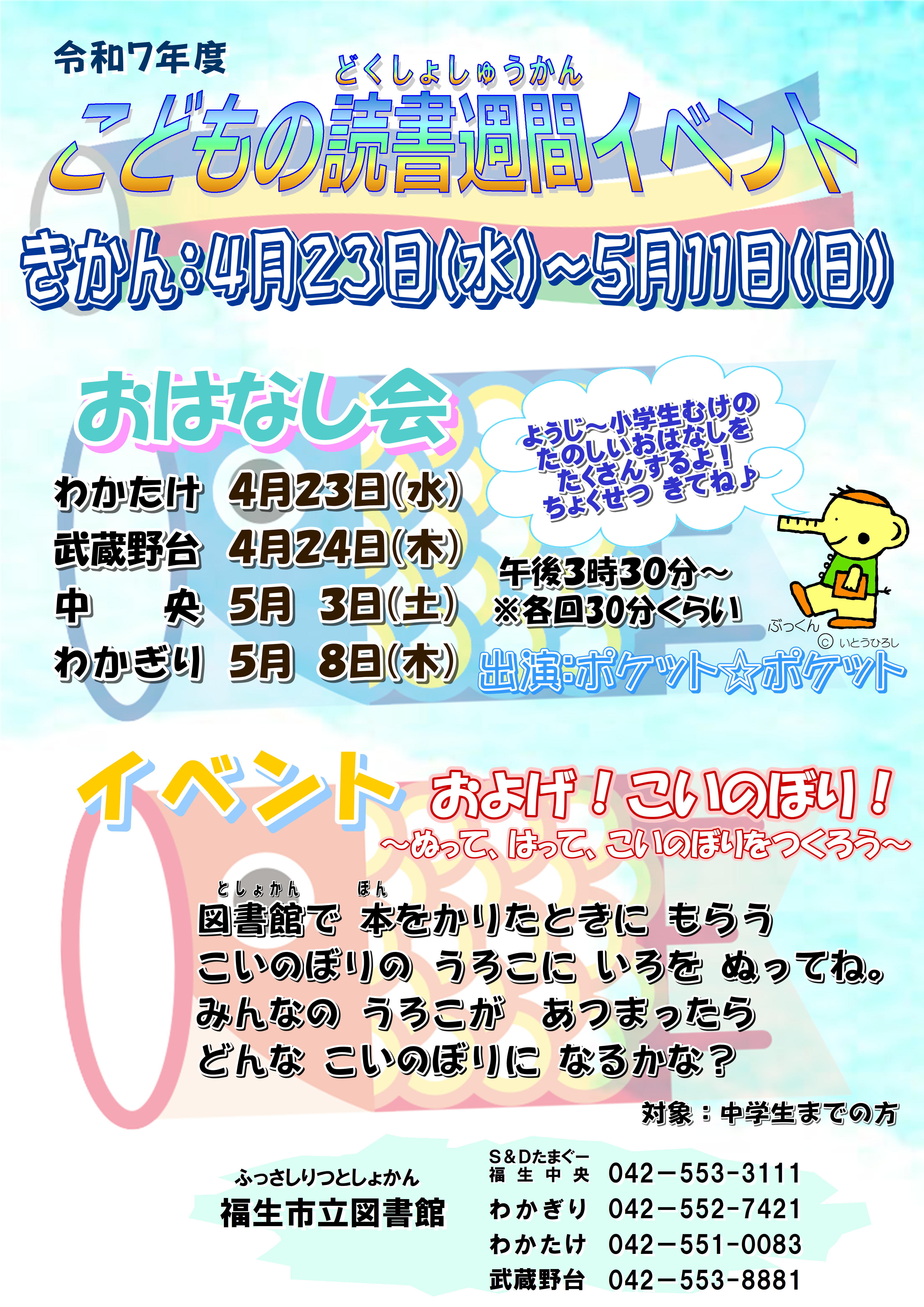 こどもの読書週間おはなし会とイベントのお知らせ